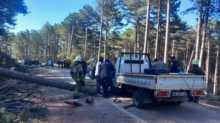 Bursa Uludağ'da ormanda kesilen çam ağacının seyir halindeki kamyonetin üzerine devrilmesi sonucu 1 kişi hayatını kaybetti, 2 kişi yaralandı. Olayla ilgili şüpheli gözaltına alındı.