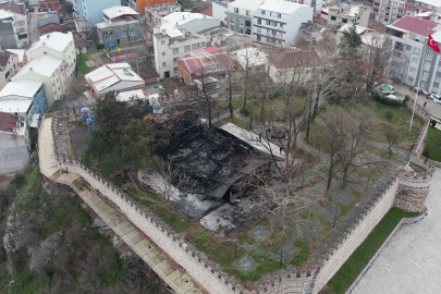 Yangın çıkan tarihi kalenin son görüntüsü yürekleri burktu