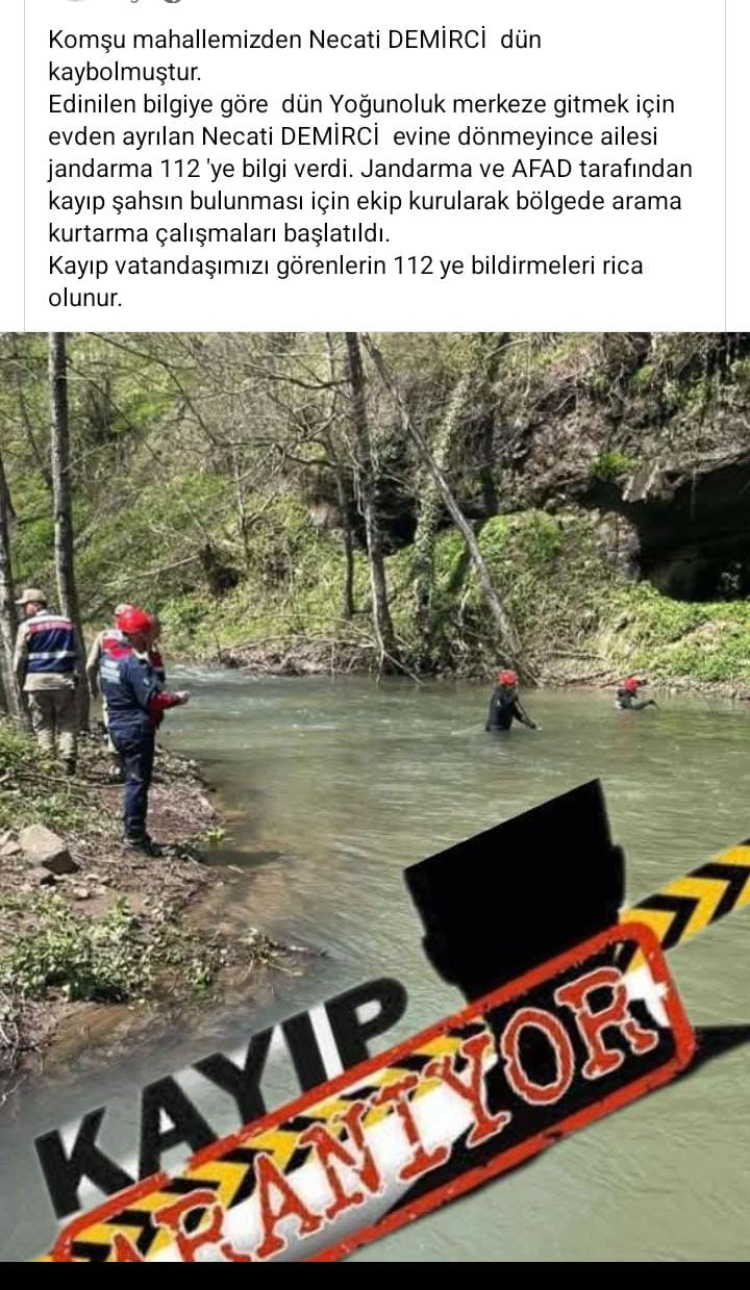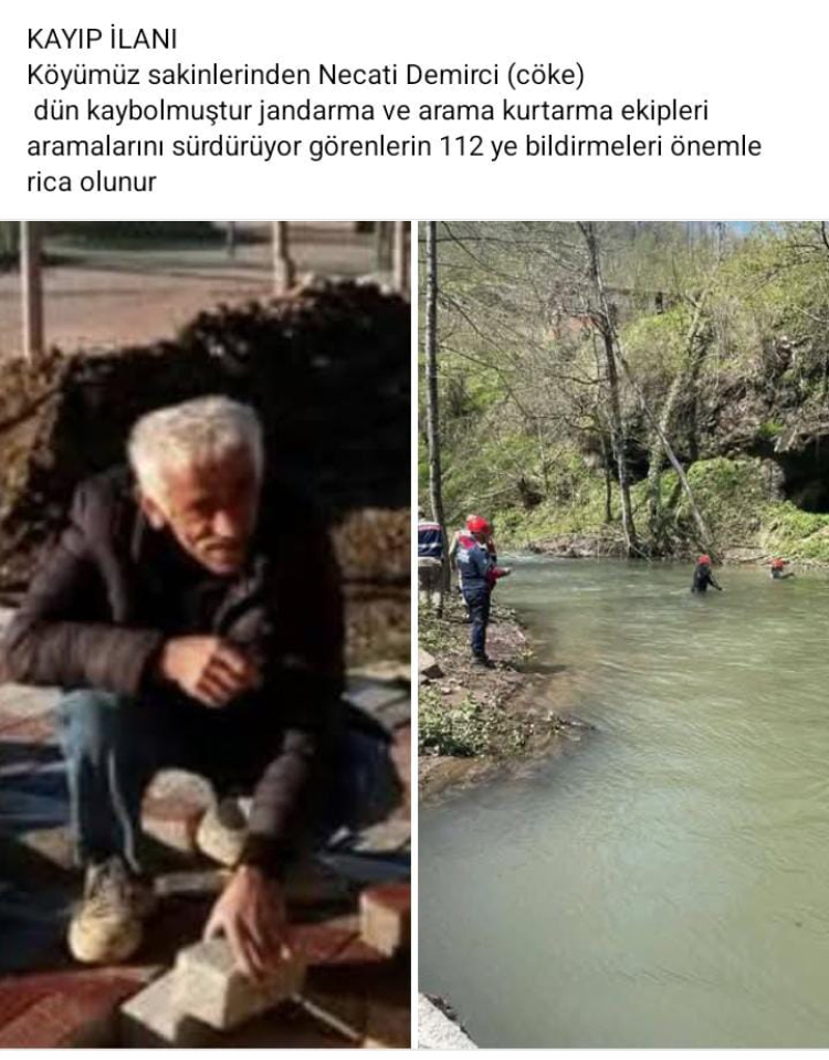 Ordu'nun İkizce ilçesi Yoğunluk Mahallesi civarlarında 63 yaşındaki Necati Demirci'den haber alınamıyor.