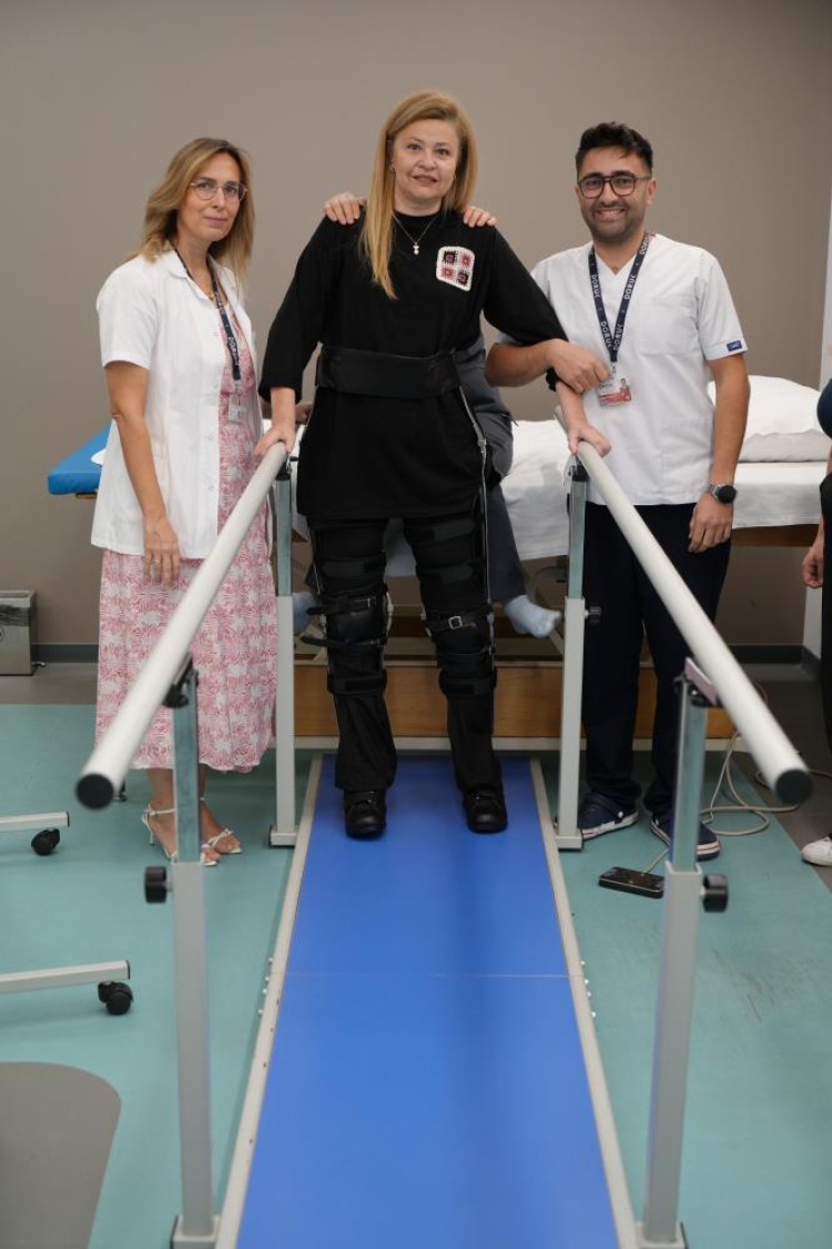 Yürüyebilmek için robot desteğiyle her gün yürüyüş ve egzersiz yapan 52 yaşındaki Bennur Karaburun, "Beynim artık bacaklarıma komut verebiliyor. Yataktan düşmeyi becerebiliyorum. Buna herkes üzülürken ben çok mutlu oluyorum. 29 yıl sonra ayakta olmak mutluluk yaşattı" dedi.
