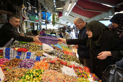 Bursa’da tarihi çarşıda, Ramazan Bayramı’na sayılı günler kala bayram şekerleri ve çikolataları tezgahlarda yerini alarak müşterilerin beğenisine sunuldu. Kilogram fiyatının 150 liradan 350 lira arasında değişen şeker ve çikolatalar kısa bir süreliğine alıcılarını bekliyor. Rengarenk görüntüleri ile çocukları cezbeden şeker ve çikolatalara vatandaşlar bayram öncesi yoğun ilgi gösteriyor.