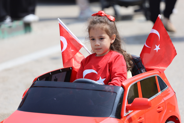 Ulusal egemenliğimizin perçinlendiği 23 Nisan Ulusal Egemenlik ve Çocuk Bayramı, tüm Türkiye’de olduğu gibi Bursa’da da büyük bir coşkuyla kutlandı. Bursa Büyükşehir Belediyesi tarafından ‘Onların gülüşü, hepimizin yarını’ teması ile hazırlanan ‘Çocuk Şenliği’, dolu dolu program içeriğiyle çocuklara unutulmaz bir gün yaşattı. 23 Nisan coşkusu, yüzlerce çocuk ve ailelerinin katılımıyla Çarşıbaşı’ndan Atatürk Stadyumu Kütüphanesi’ne doğru yapılan kortej yürüyüşüyle başladı. Ellerindeki Türk bayraklarıyla marşlar ve şarkılar söyleyerek yürüyen çocuklara, Büyükşehir Belediye Başkanı Mustafa Bozbey ve eşi Seden Bozbey, CHP İl Başkanı Nihat Yeşiltaş, CHP PM Üyesi Canan Taşer, CHP Bursa Milletvekilleri Nurhayat Altaca Kayışoğlu ve Kayıhan Pala, Büyükşehir Belediyesi Genel Sekreteri Doç. Dr. Ergül Halisçelik, Bursa Kent Konseyi Başkanı Prof. Dr. Ertuğrul Aksoy, ilçe başkanları, Büyükşehir Belediyesi bürokratları da eşlik etti. Çocuklar, ellerindeki pankart, Türk ve Atatürk bayraklarıyla Atatürk Stadyumu Kütüphanesi’ne kadar bando eşliğinde coşkuyla yürüyüş gerçekleştirdi.