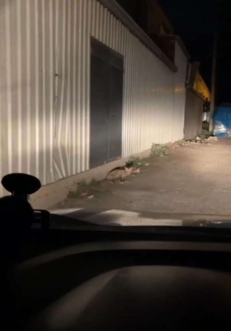 Yaşam alanı olan ormandan İnegöl'ün merkezine inen tilki, yiyecek ararken görüntülendi.
