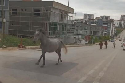 Bursa'da başıboş atlar caddeleri hipodroma çevirdi