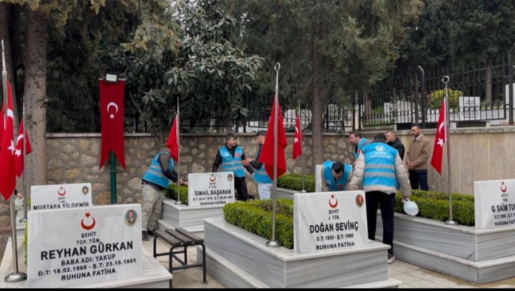 Gerçekleştirilen ziyarette şehit mezarlarının çevresi temizlenirken, kabirlere çiçekler ekildi. Bayram öncesi yapılan anlamlı ziyarette şehitler için dualar edilerek kabirler başında saygı duruşunda bulunuldu.