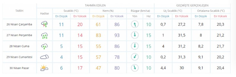 5 GÜNLÜK TAHMİNİ