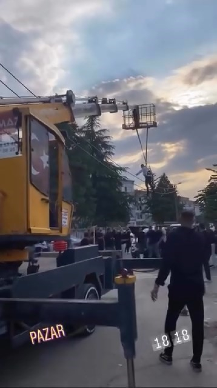 Bursa'nın Yenişehir ilçesinde ilginç gelenekler devam ediyor. Düğün evine girmeden damada yapılan türlü türlü işkencelere, bir yenisi daha eklendi. Damadın arkadaşları kiraladıkları vinç ile damadı iple sallandırdı. Arkadaşları damadın altında çiftetelli oynarken zaman zamanda ayaklarından tutmaya çalıştı. İlginç anlar ise cep telefon kamerasına yansıdı.
