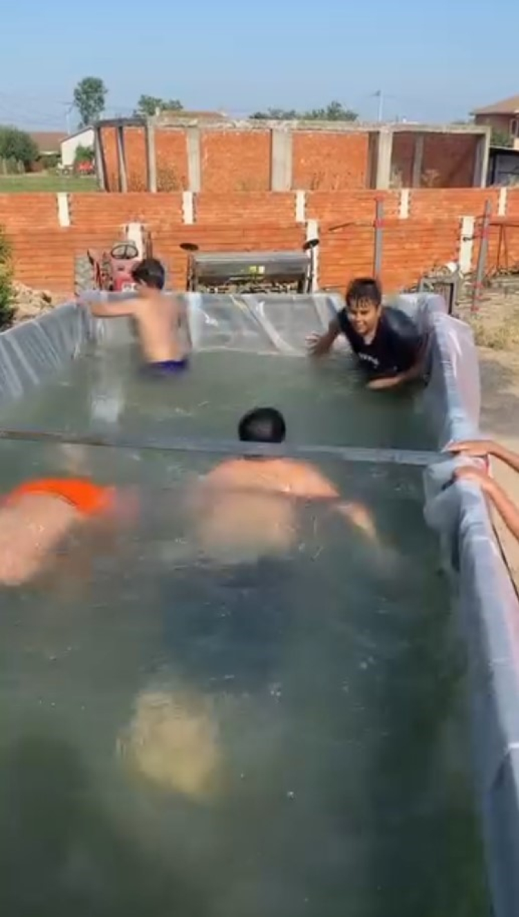 Yenişehir ilçesine bağlı Sarıbey Mahallesi’nde, sıcak havalardan bunalan bir vatandaş zekasını konuşturarak çocuklar için ilginç bir çözüm geliştirdi. Sahibi olduğu kamyonun kasasını naylonla kaplayan vatandaş, kasaya su doldurarak mahalle çocuklarına adeta mobil bir yüzme havuzu sundu.