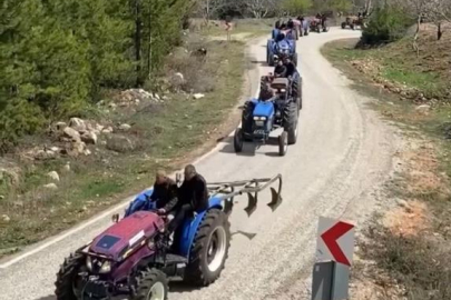 Bursa'da komşu köye traktörlü bayram konvoyu