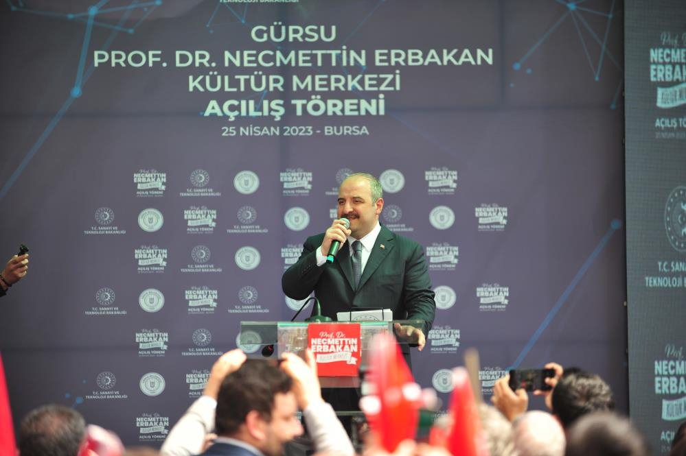Necmettin Erbakan Kültür Merkezi’nin adının öneminden bahseden Bakan Varank, “Merhum Prof. Dr. Necmettin Erbakan, çok vizyoner bir insandı. Dava adamı bir insandı. Bugün bu açılışı yaparken Ankara'da ne oldu biliyor musunuz? Erbakan Hocamızın hep hayali olan, Türkiye ilk defa kendi jet motorlu uçağını bugün uçurdu. Türkiye'nin otomobilini yapmak Erbakan Hocamızın hayaliydi. İşte Togg'u biz gerçekleştirdik. Türkiye'nin tankını yapmak Erbakan Hocamızın hayaliydi. Altay tankını ordumuza teslim ettik. Türkiye'nin uçağını yapmak Erbakan Hocamızın hayaliydi. İşte bugün jet motorlu uçağımızı uçurduk. Biz bu ülkeyi kalkındırmanın, bu ülkeyi kendi ayakları üzerinde tutmanın yolu nereden geçtiğini gayet iyi biliyoruz. İnşallah yolumuzu aynı gayretle devam edeceğiz. Bu cahil muhalefetin ne dediğine de aldırmayacağız. Bu muhalefettekiler o kadar cahil ki. Ne üretimden anlarlar, ne sanayiden anlarlar, ne kalkınmadan anlarlar. Bunların yatırımdan anladığı heykelle musluk açmak. Şimdi o arkadaşlar o kadar Türkiye'den bihaberler ki, ‘Türkiye'nin otomobili İtalya'dan geliyor’ diyorlar değil mi? Bunlar ne Türkiye'yi biliyorlar ne Gemlik’i biliyorlar. Bunlar zannediyorlar ki Gemlik İtalya'da. Ama biz onlara Türkiye'yi de, Bursa'yı da, Gemlik'i de Allah'ın izniyle öğreteceğiz mi? Bu yatırımlarla şehrimizi, ilçelerimizi kalkındırmaya devam edeceğiz. Türkiye'yi kalkındırmanın yolu teknolojiden geçiyor. Sanayiden geçiyor. Katma değerli üretimden geçiyor. Bizim yaptığımız Türkiye’nin otomobili, batarya fabrikası gibi yatırımlar. Türkiye'nin tankı, Türkiye'nin TCG Anadolu gemisi, Türkiye'nin uçakları, işte bunlar hepimizin ekmeğini büyütecek yatırımlar. Biz bu ekmeği büyüttükçe Allah'ın izniyle refahı da kendi aramızda paylaşmış olacağız. Ülkemizi kalkındırmış olacağız. ‘Türkiye'nin otomobilini yaptınız ama Türkiye'nin otomobili karın doyuruyor mu?’ Böyle bir cahillik olmaz. Türkiye'nin otomobilinde çalışan binlerce emekçi kardeşimiz. Türkiye'nin batarya fabrikasında çalışacak binlerce emekçi kardeşimiz evine ekmek götürmüyor mu? Biz bu yatırımları yapmazsak bu istihdam nasıl oluşacak? İşte onun için biz bunların ne dediğine bakmayacağız. Yolumuza kararlılıkla devam edeceğiz. Tekrar güçlü bir şekilde sandıktan çıkacağız. Ama yetmez. Cumhur İttifakı'nı da mecliste tekrar çoğunluğa getireceğiz” diye konuştu.