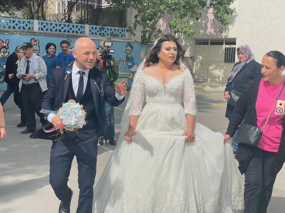 Bu sabah 08.00’den itibaren de 1141 okulda vatandaşlar oy kullanmaya başladı. En renkli görüntüler de bugün düğünü olan yeni çiftlerin gelinlik ve damatlık ile oy kullanması sırasında yaşandı.