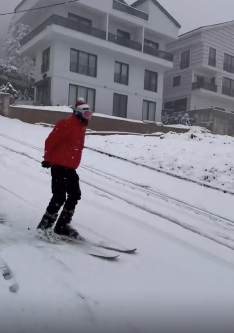 Merkez Yıldırım ilçesi Piremir Mahallesi'nde sabah saatlerinde etkili olan kar yağışı sonrası beyaza bürünen yollarda kayak takımıyla kayan vatandaş, çevredeki vatandaşların ilgisini çekti. O anlar cep telefonu kamerasıyla kaydedildi.