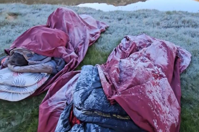 Bursa'da bir grup dağcı, Uludağ'ın zirvesinde iki mevsimi aynı gün yaşamanın keyfine vardı. Geceden yola çıkan dağcılar, sabah uyandıklarında tulumlarının üzerine yağan kırağı görünce gözlerine inanamadı. Uludağ'ın 2 bin 543 rakımlı zirvesine çıkan dağcıların kaydettikleri göller, sisler, ayıların ayak izleri ve ilginç doğa olayları izleyenleri büyüledi.