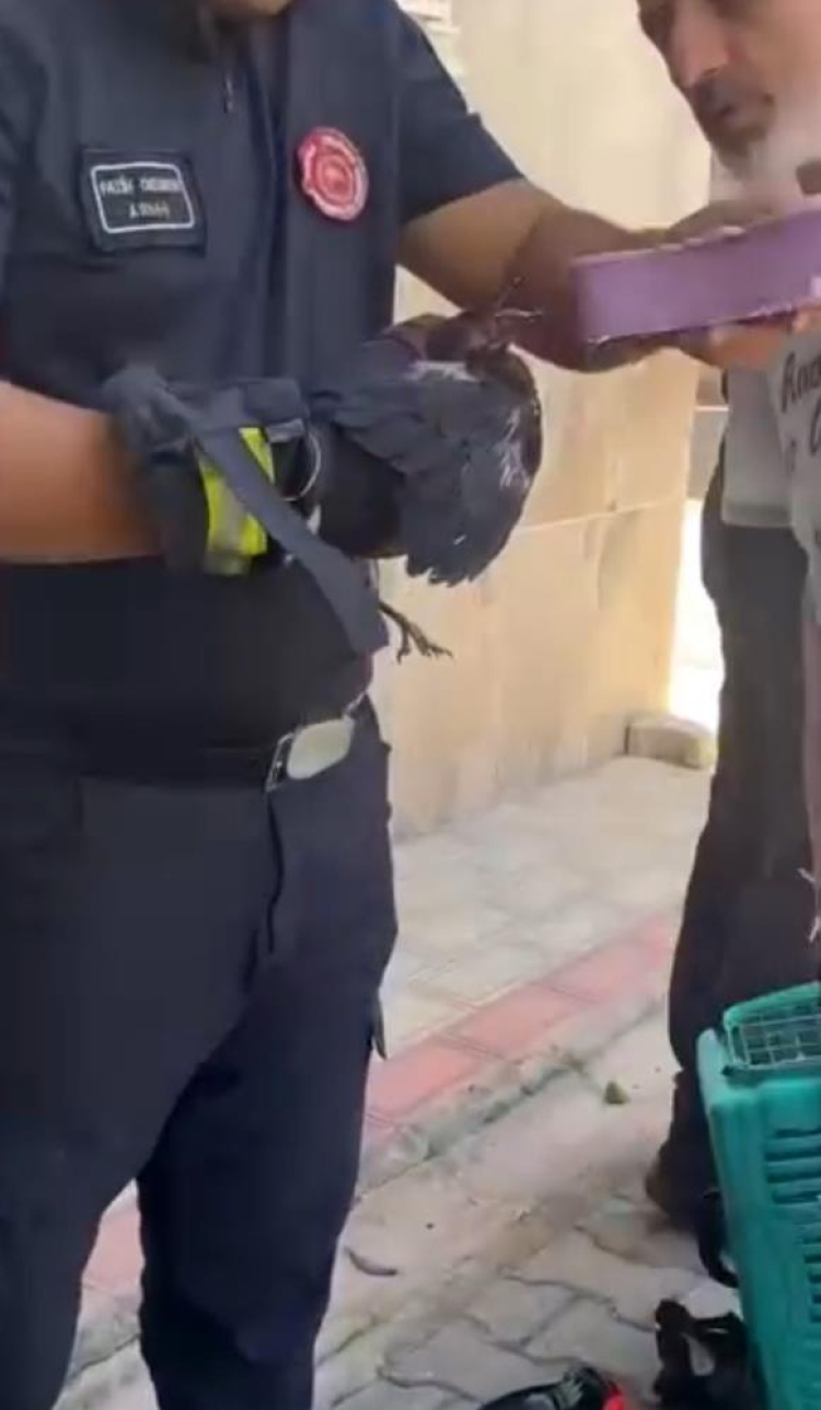 Günlerdir aç ve yorgun olduğu tahmin edilen yavru karga, kurtarılmasının ardından yeniden doğaya salındı. Olayı izleyen vatandaşlar duygu dolu anlar yaşarken, kurtarma anı cep telefonu kamerasına saniye saniye yansıdı.