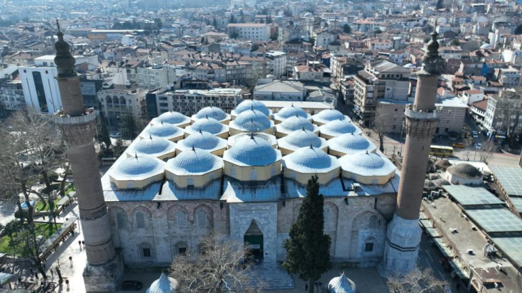 Bursa'da 627 yıllık Ulu Cami'nin 70 metrelik 2 minaresi arasına asılan 'Kul hakkından sakın' mahyasının yerine ‘Zekat Berekettir' yazısı asıldı. Mahyada alışılagelmişin dışına çıkılarak, ovadan dağa doğru değil de, dağdan ovaya doğru okunacak.