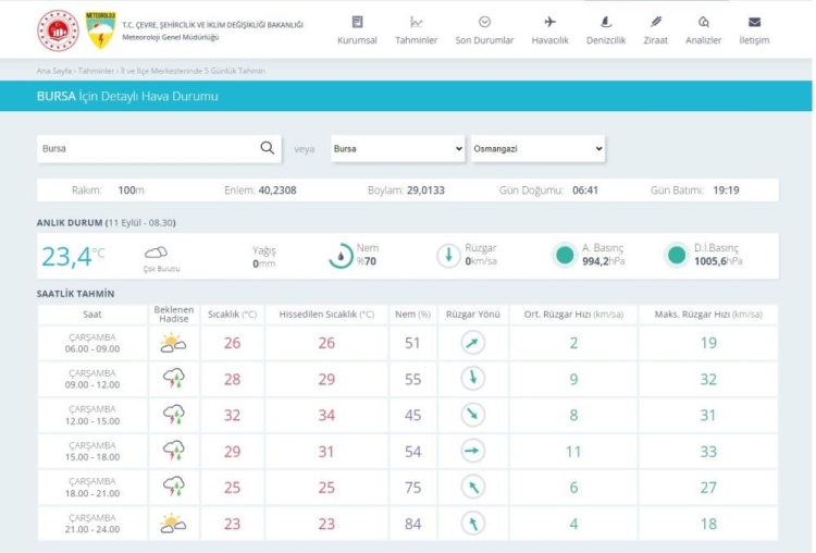 Gün boyu en yüksek sıcaklığın 32 olacağı Bursa'da, en düşük sıcaklık 20 derece olması tahmin ediliyor.