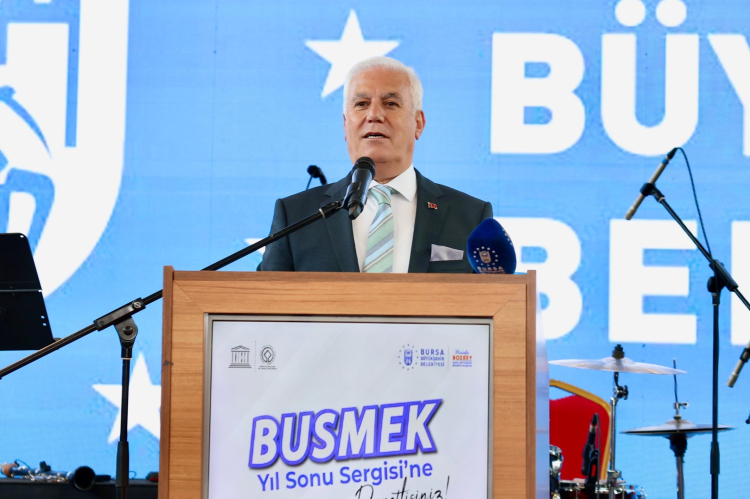 Bursa Büyükşehir Belediyesi’nin en önemli sosyal sorumluluk projelerinden biri olan BUSMEK tarafından düzenlenen ‘BUSMEK Yıl Sonu Sergisi’nin açılışı Atatürk Kültür Merkezi Merinos Yerleşkesi Fuar Alanı’nda gerçekleştirildi. 2024-2025 eğitim öğretim döneminde 16 farklı kurs merkezinde 30 eğitmenin katkısıyla düzenlenen eğitimlere katılan 3 bin 68 kursiyerin ortaya koyduğu yaklaşık bin 200 eser, sergide Bursalıların beğenisine sunuldu. Serginin açılışına Bursa Büyükşehir Belediye Başkanı Mustafa Bozbey ve eşi Seden Bozbey’in yanı sıra Büyükşehir Belediyesi Genel Sekreteri Doç. Dr. Ergül Halisçelik, Genel Sekreter Yardımcıları Ali Altunsoy, Mehmet Emin Direkçi, Mehmet Yıldız ve Mehmet Tözün Bingöl, Büyükşehir Belediyesi, ilçe belediyeleri ve siyasi partilerin yöneticileri, eğitmenler, kursiyerler ve çok sayıda vatandaş katıldı.