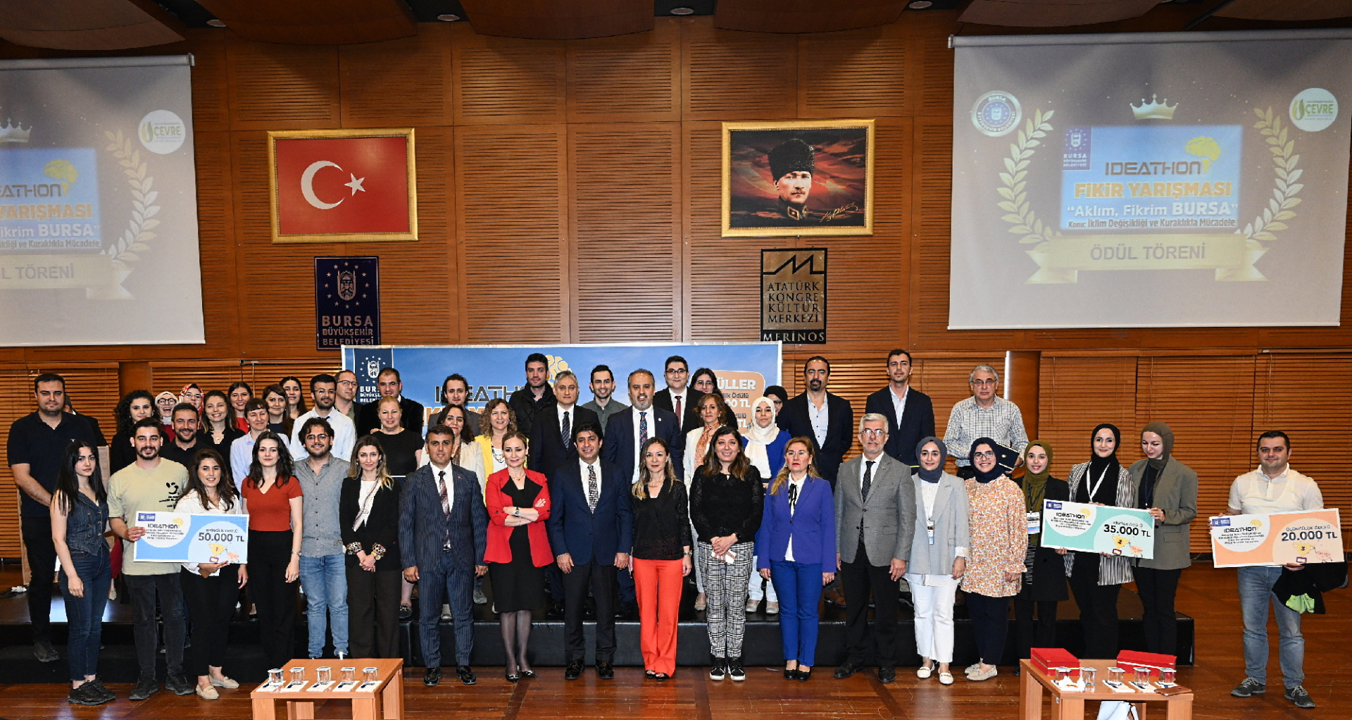 Bursa Büyükşehir Belediyesi tarafından iklim değişikliği ve kuraklıkla mücadele konusunda yeni fikirler üretilmesi ve projeler geliştirilmesi amacıyla düzenlenen İdeathon Fikir Yarışması’nın kazananları ödüllendirildi.