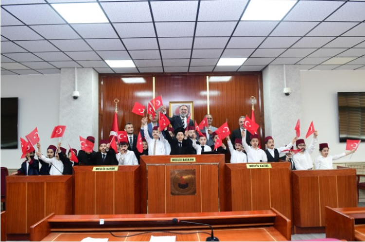 Kestel Belediye Başkanı Ferhat Erol, 23 Nisan Ulusal Egemenlik ve Çocuk Bayramı münasebetiyle Musa Amca İlkokulu öğrencileriyle bir araya geldi. Programda minikler, Türkiye Büyük Millet Meclisi’nin açılışını canlandırarak bayram coşkusunu meclis salonuna taşıdı.