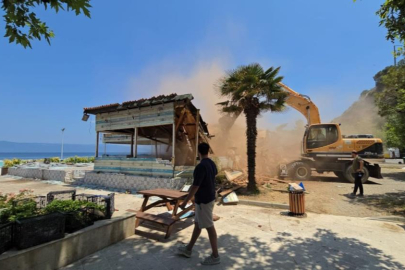 Bursa'nın Mudanya ilçesine bağlı Tirilye Mahallesi'nde sahil bandında yer alan 4 işletmenin yıkımına başlandı.