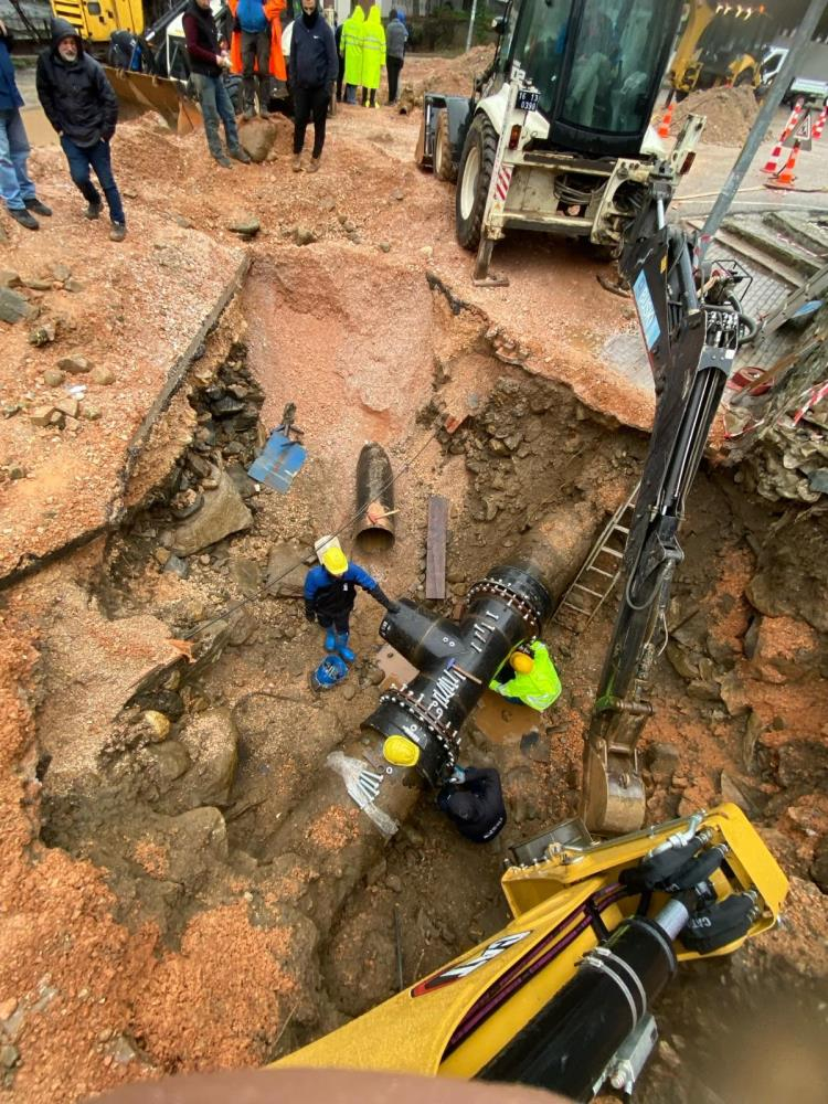 Bursa’yı geleceğe güvenle taşımak için her alanda yatırımlarını sürdüren Büyükşehir Belediyesi, kentte susuzluk problemi yaşanmaması amacıyla BUSKİ Genel Müdürlüğü aracılığıyla altyapı çalışmalarına aralıksız devam ediyor. Pınar kaynaklarının daha etkin kullanılabilmesi ve kentin farklı bölgelerine su aktarımı yapılabilmesi amacıyla ekipler tarafından Yıldırım ilçesi Siteler Mahallesi’nde 700 milimetre çapında isale hattı bağlantısı tamamlandı. Çalışma sırasında hat imalat işlemleri titizlikle gerçekleştiren BUSKİ ekipleri, yer altı sularının daha verimli kullanılabilmesi için yoğun mesai harcıyor. Bursa Büyükşehir Belediyesi, altyapı çalışmalarını vatandaşların kesintisiz ve kaliteli suya erişimini güvence altına alacak şekilde aralıksız sürdürüyor.