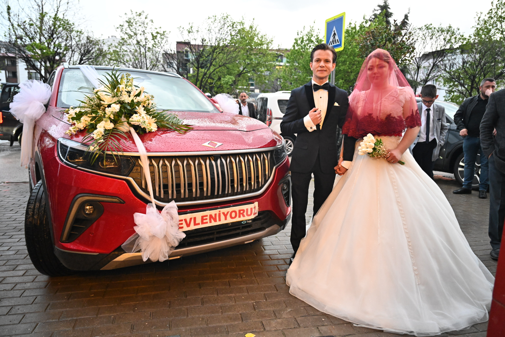 Bursa’dan milletvekili adayı olan Sanayi ve Teknoloji Bakanı Mustafa Varank, önceki gün bir kültür merkezi açılışında yanına gelen Hüseyin Özdemir’in düğünü olacağını öğrenince, jest yapıp kendisinin kullandığı Anadolu Kırmızısı Togg’u gelin arabası olacağının sözünü vermişti. Bakan Varank, sözünü tuttu ve aracı teslim ettiği Bursa Büyükşehir Belediye Başkanı Alinur Aktaş da şoförlüğünü yapacağı Togg’u süsletip, gelin arabasına dönüştürdü. Direksiyona geçen Başkan Aktaş, yanına aldığı damat Hüseyin Özdemir ile konvoy eşliğinde gelin Habibe Fatsa Özdemir'in Gemlik ilçesindeki evine geldi. Gelenekler gereği Türk Bayrağı açılarak, havai fişeklerle karşılanan konvoyda en büyük ilgiyi Türkiye’nin otomobili çekti. Gelin Habibe Fatsa Özdemir'i baba evinden dualar eşliğinde alan Başkan Aktaş, genç çifti düğün salonuna kadar götürdü.