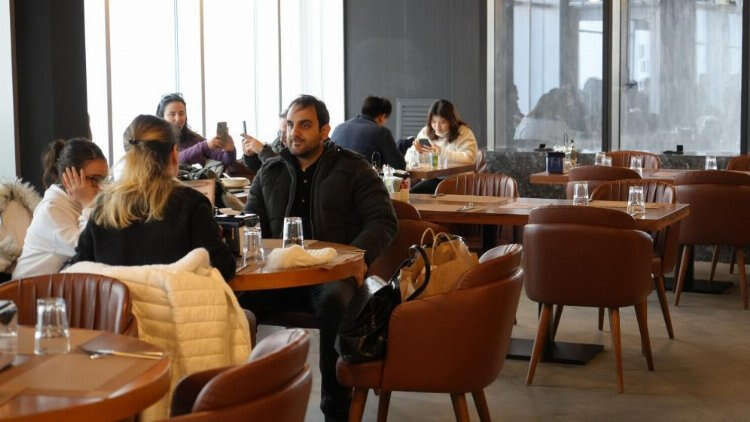 Çorba 60, sucuk ekmek içecek 200, pizza 180, Bursa Kebabı 300 liradan misafirlere ikram edilirken, akıllı uygulama yükleyenler yüzde 30 oranında para puan kazanıyor. Cuma günü halk günü olduğu için puan oranı yüzde 50'ye çıkıyor.