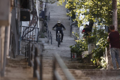 Çıkması 10 dakika, inmesi 10 saniye Bursa'nın en dik ve en uzun merdiveninde yaklaşık 225 basamağı bisikletiyle 10 saniyede inen Emir Melik Peker, “Dünya'da downhill sporu olarak geçiyor, Türkçeye çevirdiğimiz zaman dağ bisikleti ile tepeden iniş anlamına geliyor. Normal şartlarda bu sporun orijinalinde dağlardan iniyoruz. Patikalar, rampalar topraktan her şey olabiliyor. Şehir içi parkurlar işin görsel kısmı. Ayrı bir zevki var, sosyal medya kısmında bize yardımcı olabiliyor. 2019 yılından bu güne tepeden iniş yapıyorum. Daha öncesinde başka kategorilerde yarışmıştım. 2019 yılından itibaren katıldığım yarışlarda 2 Türkiye şampiyonluğu kazandım. Birçok özel yarışta derecem var. Ayrıca yurtdışında genel kategoride 1. olan ilk sporcuyum. Bu spora girdiğimiz zaman sponsor ihtiyacı duyuyoruz. Bunun da en büyük kaynağı sosyal medya oluyor. O nedenle sosyal medyaya içerik üretiyoruz. Genellikle şehir içi parkurlar görsel açıdan heyecanlı olduğu için insanların ilgisini çekiyor. Dağda sürdüğümüz zaman insanlar bunu anlamıyor ama merdivenlere geldiğimiz zaman işin ciddiyetini ortaya çıkartıyor. Burası Bursa'nın en dik ve uzun merdiveni, yaklaşık 225 basamak. Frenler bir aşamada artık işlevini kaybediyor. Çıkması 10 dakika, inmesi 10 saniye” şeklinde konuştu.