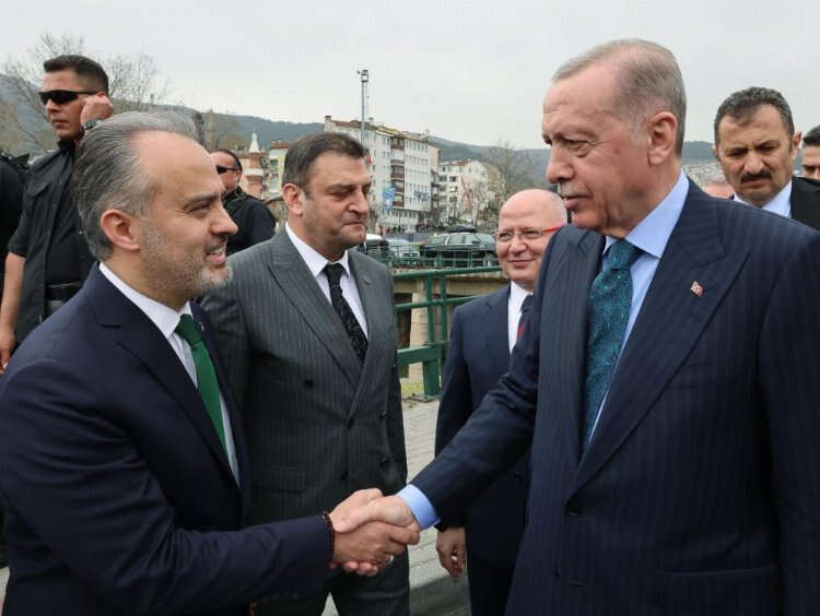 Türkiye yüzyılında şehirlerin inşasında Bursa ile yol arkadaşlığın yapmak istediklerini söyleyen Erdoğan, “Bursa’nın boş lafla palavrayla yalanla dolanla işi olmaz. Çünkü Bursa emeğin, alın terinin, üretimin şehridir. Bursa yatırıma, esere bakar. Hizmete bakar, projeye bakar, velhasıl Bursa icraata bakar. Dolayısıyla Türkiye yüzyılı yolculuğumuzda bizi en iyi anlayacak olan Bursa’dır. Bursa ilk yerli markamız Togg fabrikası başta olmak üzere ülkemizin prestij eserlerine ev sahipliği yapıyor. Medeniyetlerin mirası eşsiz birikimi ile vakur insanı ile de Bursa’ya da böylesi yakışır. Bursa 31 Mart’taki tercihi ile büyükşehirde ve ilçelerde belediye yönetimlerine de yansıtacaktır. Bursa’ya güveniyorum. Biz de belediye başkanlarımızla el ele verip Bursa’nın önünde yeni bir dönem açmayı planlıyoruz. Öyleyse şimdi buradan öyle bir ses verin ki Marmara’nın karşı kıyılarından bile duyulsun. Bursa; Emirsultan Hazretleri’nin Üftade Hazretleri’nin şehri Bursa, Eşrefoğlu’nun Süleyman Çelebi’nin şehri Bursa, Uludağ gibi yüze bereketli ovaları gibi dingin. Sanayinin, ticaretin, tarımın, turizmin iftiharı Bursa 31 Mart’ta Türkiye yüzyılı şehirleri için hazır mıyız? 31 Mart’ta Türkiye yüzyılı şehirleri için kararlı mıyız? 31 Mart’ta gerçek belediyeciliği tercih ediyor muyuz? Bunun için seçim gününe kadar ana kademe kapı kapı dolaşmaya var mıyız?" şeklinde konuştu.