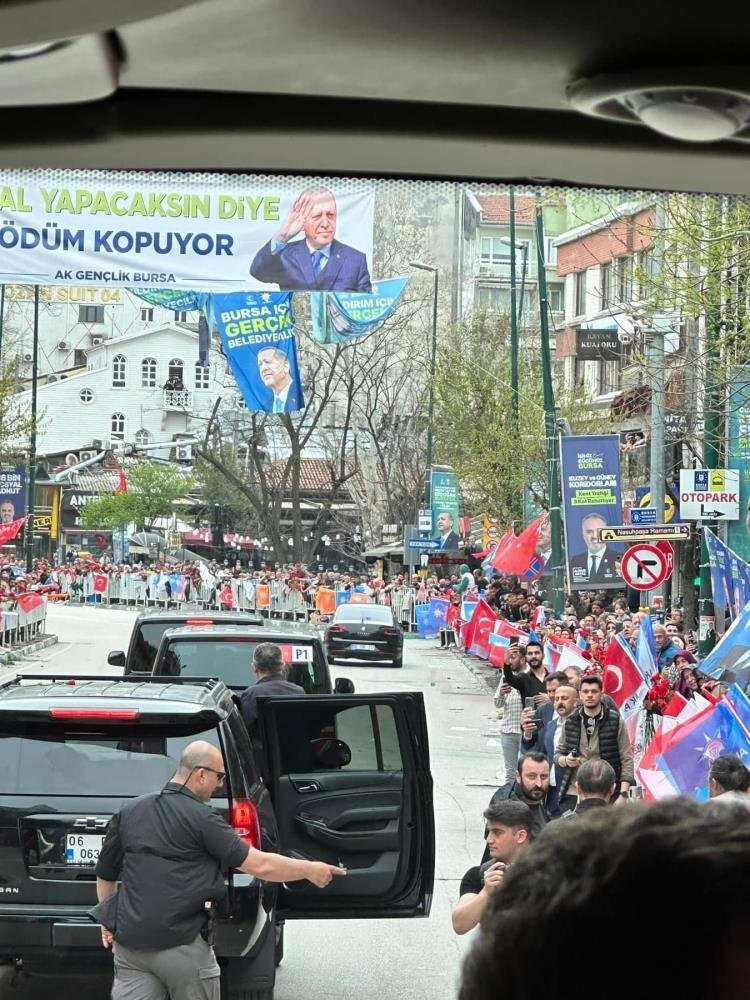Cumhurbaşkanı Recep Tayyip Erdoğan pazar günkü seçim öncesi Bursa'da moral buldu. Atatürk Caddesi'nden başlayarak Setbaşı ve Yeşil'e kadar binlerce Bursalı yollara dökülüp Erdoğan'ın otobüsüne karanfil attı. Erdoğan da çocuklara oyuncak dağıttı.