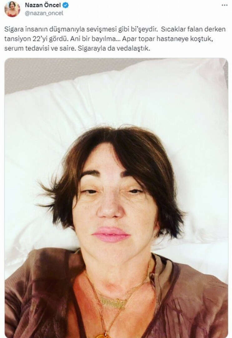 Ünlü şarkıcı Nazan Öncel sosyal medya hesabından yaptığı paylaşımla hastaneye kaldırıldığını duyurdu.