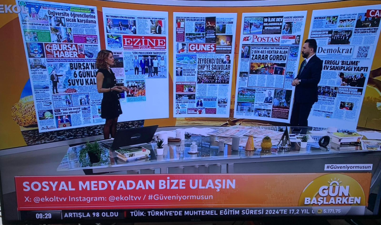 Daha önce birçok ulusal televizyon kanalında Bursa’nın sesi olan gazete, son olarak Ekol TV ekranlarında yer aldı. Programda Bursa’nın güncel gelişmeleri, yerel sorunları ve çözüm önerileri geniş bir şekilde ele alınarak izleyicilere aktarıldı.