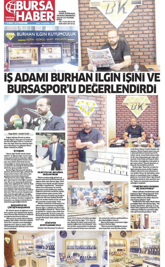 İŞ ADAMI BURHAN ILGIN İŞİNİ VE BURSASPORU DEĞERLENDİRDİ