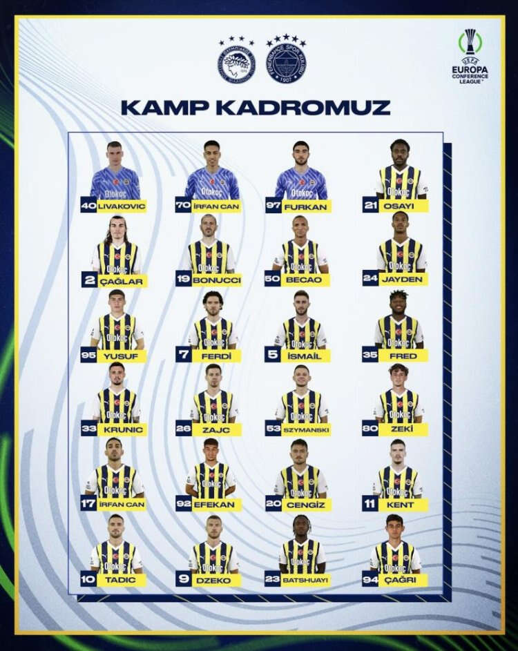 "Dominik Livakovic, İrfan Can Eğribayat, Furkan Onur Akyüz, Bright Osayi-Samuel, Çağlar Söyüncü, Rodrigo Becao, Leonardo Bonucci, Yusuf Akçiçek, Jayden Oosterwolde, Ferdi Kadıoğlu, İsmail Yüksek, Fred Santos, Rade Krunic, Miha Zajc, Sebastian Szymanski, Muhammet Zeki Dursun, İrfan Can Kahveci, Efekan Karayazı, Cengiz Ünder, Ryan Kent, Dusan Tadic, Edin Dzeko, Michy Batshuayi, Çağrı Fedai."