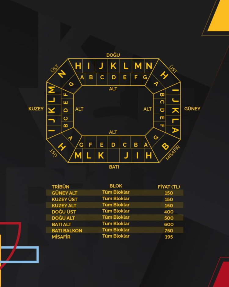 Güney Alt Tribün bileti: 150 TL,