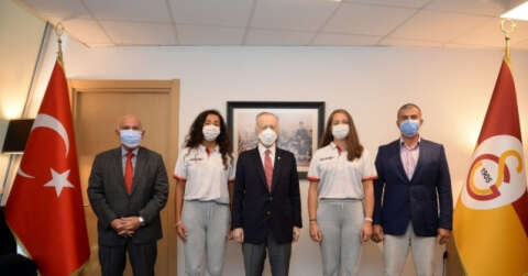 Gençler Avrupa Kürek Şampiyonası’ndan bronz madalya ile dönen Galatasaraylı sporcular Aslıhan Naran Akkay ile Ruken Ülgey, Galatasaray Başkanı Mustafa Cengiz ile bir araya geldi.