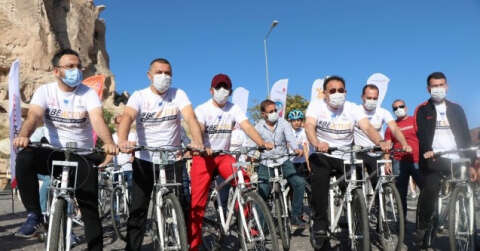 Avrupa Spor Haftası etkinlikleri kapsamında Nevşehir’de 7’den 70’e herkes Uçhisar’dan, Nevşehir’e kadar olan parkurda bisiklet sürdü.
