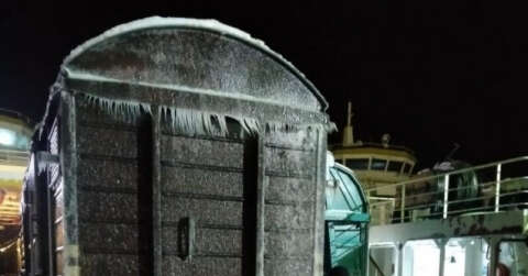 Feribottaki tren vagonları buzla kaplandı