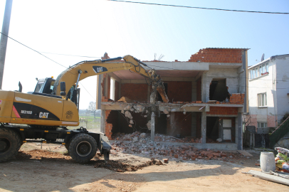 Nilüfer’de 2 katlı kaçak bina yıkıldı