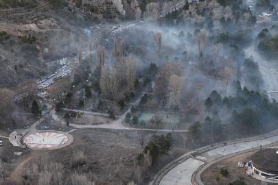 Sivas'ta bulunan Paşabahçe mesire alanında iftar hazırlığı yapan Sivaslıların iftara yakın aynı anda yaktıkları mangallardan çıkar yoğun duman, orman yangınlarını andıran görüntüler oluşturdu.