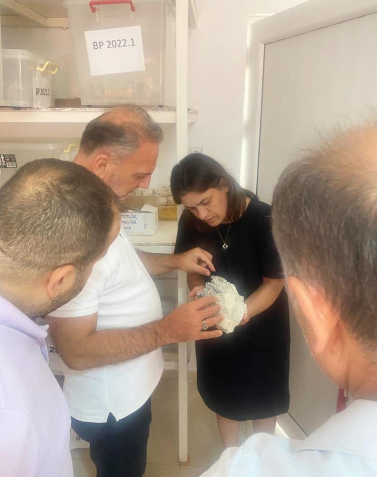 Bursa Kültür ve Turizm Müdürü Dr. Kamil Özer, milyonlarca yıl önceki canlı türlerinin biyolojik geçmişi ve göçüne tanıklık eden Mustafakemalpaşa'nın kırsal Paşalar Mahallesi sınırlarındaki kazı alanında incelemelerde bulundu.