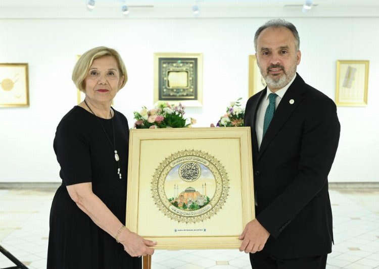 Bursa Büyükşehir Belediye Başkanı Alinur Aktaş da sergi ziyaret ederek Tezhip sanatçısı Memnune Birkan’ı tebrik etti. Çalışmaları hakkında bilgi alan Başkan Alinur Aktaş, Bursa’nın köklü tarihiyle büyüleyici bir şehir olduğunu söyledi. Şehir kimliğini oluşturan kültürel değerlerinin sanat dünyasına ilmek ilmek işlendiği bir yer olduğunu da belirten Başkan Aktaş, Bursa’nın kültürel ve sosyal hayatıyla öne çıkmayı başarabilen, farklı etkinliklerle sosyokültürel hayatını sürekli zenginleştiren bir şehir olduğunu ifade etti. Sanatkârlar şehri olan Bursa’nın kültürüne ve tarihine sahip çıktıklarını dile getiren Başkan Aktaş, “Bursa Büyükşehir Belediyesi olarak her projede kültürel ve sanatla ilgili değerlerimizi, sadece Türk milletine değil, tüm dünyaya bırakılacak mirasımız olarak görüyor ve gözetiyoruz. Geleneksel sanat dallarımızı genç nesillere aktarma noktasında önemli programlara imza atıyoruz. Böylece dünün emaneti sanat dallarımızın yarınlara teslim edilmesini de garanti altına almış oluyoruz. Büyükşehir Belediyesi’nin katkılarıyla düzenlenen ‘Saraydan Sanata Tezhip’ sergisi de saray eserlerini tezhiple buluşturarak gün yüzüne çıkarmaktadır. Memnune Birkan başta olmak üzere emeği geçen herkese teşekkür ediyorum” dedi.