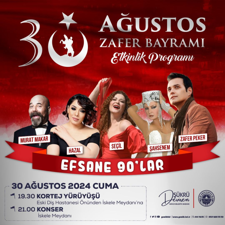 Kutlama programı, 30 Ağustos akşamı saat 19.30’da eski diş hastanesi önünden başlayacak olan kortej yürüyüşü ile start alacak. Yürüyüşün ardından etkinlikler, İskele Meydanı’nda düzenlenecek olan Efsane 90’lar konseri ile devam edecek.