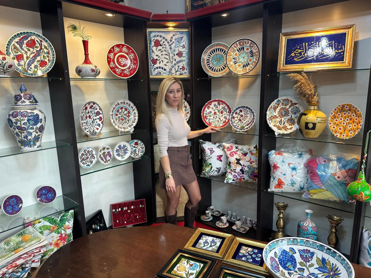 Çini sanatçısı Kübra Göllü ise 10 yıldır çini işiye uğraştığını belirterek, hem lise de hem de üniversitede seramik cam ve çinicilik üzerine eğitim aldığını söyledi.