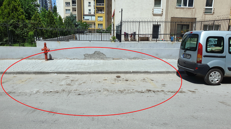 Yıllar önce park yasağı, yere boya ile yazılmış ancak zamanla silinip gitmiş. Hoş silinmese de yerde olduğu için aracı kullanan kişinin fark etmesi yine mümkün değil.