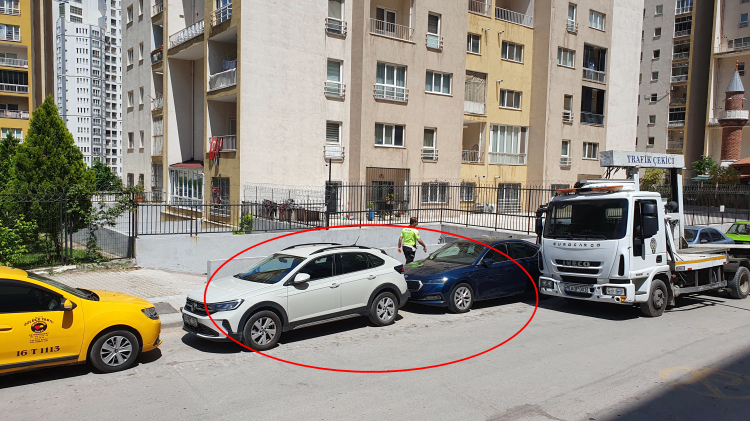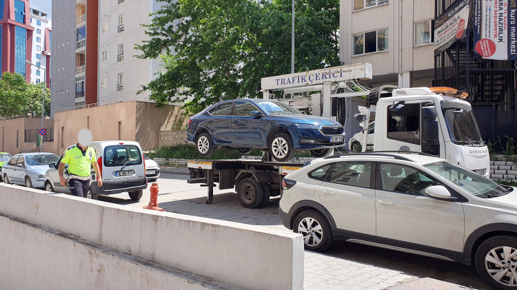 ‘Yangın Musluğu Önüne Park’ maddesi kullanılarak işaretli alandan her turda iki araç çekilerek 200 metre ötedeki oto parka götürülüyor.