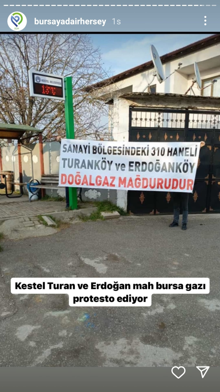 Doğalgaz meselesi için şöyle bir etraflıca inceleme yaptığımızda ise Kestel ilçesinin pek çok köyünde doğalgaz var. Özellikle, dağ köyleri olarak bilinen Çimento fabrikası ile Alaçam köylerine kadar boru döşenmiş, buralara doğalgaz getirilmiş. Ne hikmetse, Kestel ilçesinin tam orta göbeğindeki yerleşim alanlarına köylerine gaz bağlantısı olmamış.