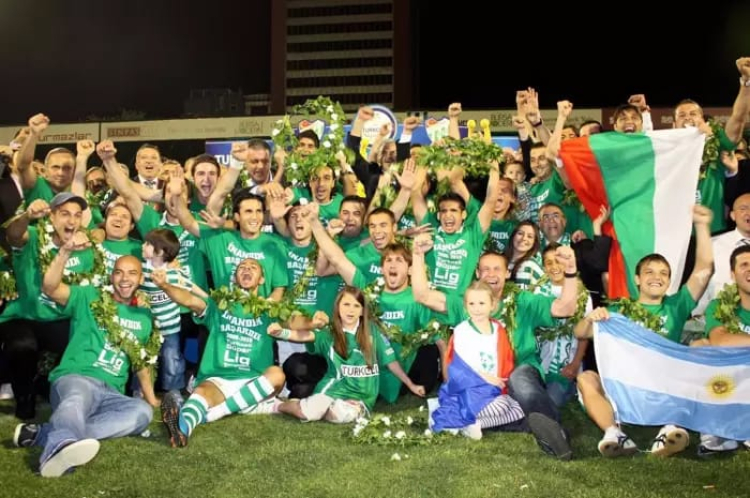 Bursaspor2009-10 sezon sonunda fotoğrafta yansıdığı gibi şampiyon olarak o sesi getirdi.